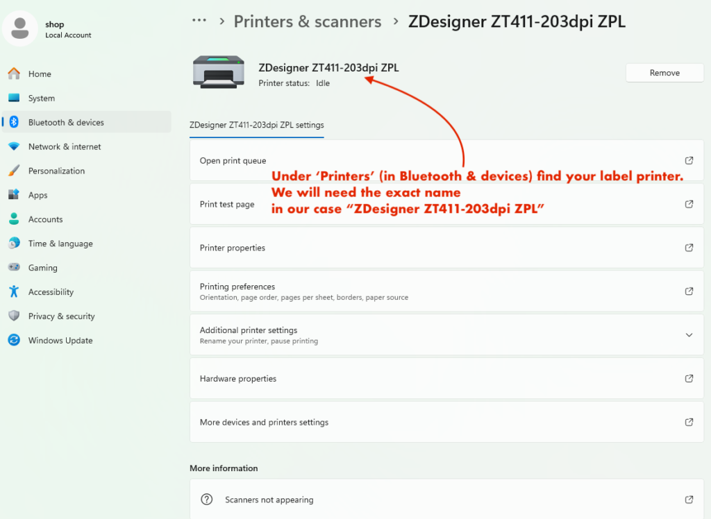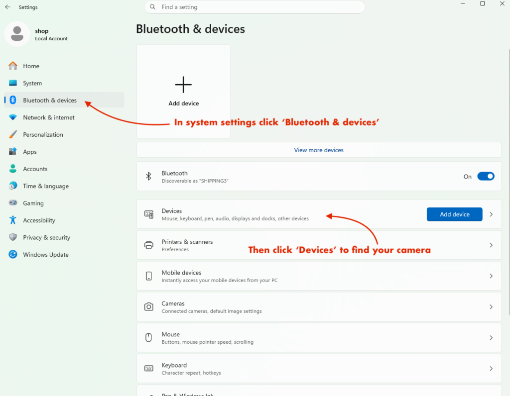 Once your devices are all connected to your computer make note of the Printer and Camera name (we will need this to configure each shipping station using Shipster Pro)