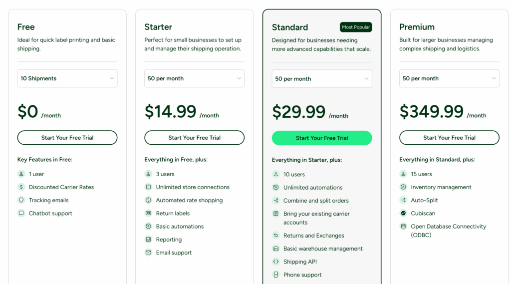 Shipster Pro works on the foundation of ShipStation and utilizes the ShipStation shipping API. The ‘Standard’ plan (starting at $29.99/month) gets you access to the API and is the starting point for using Shipster Pro.